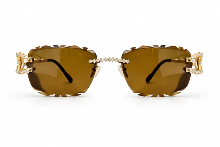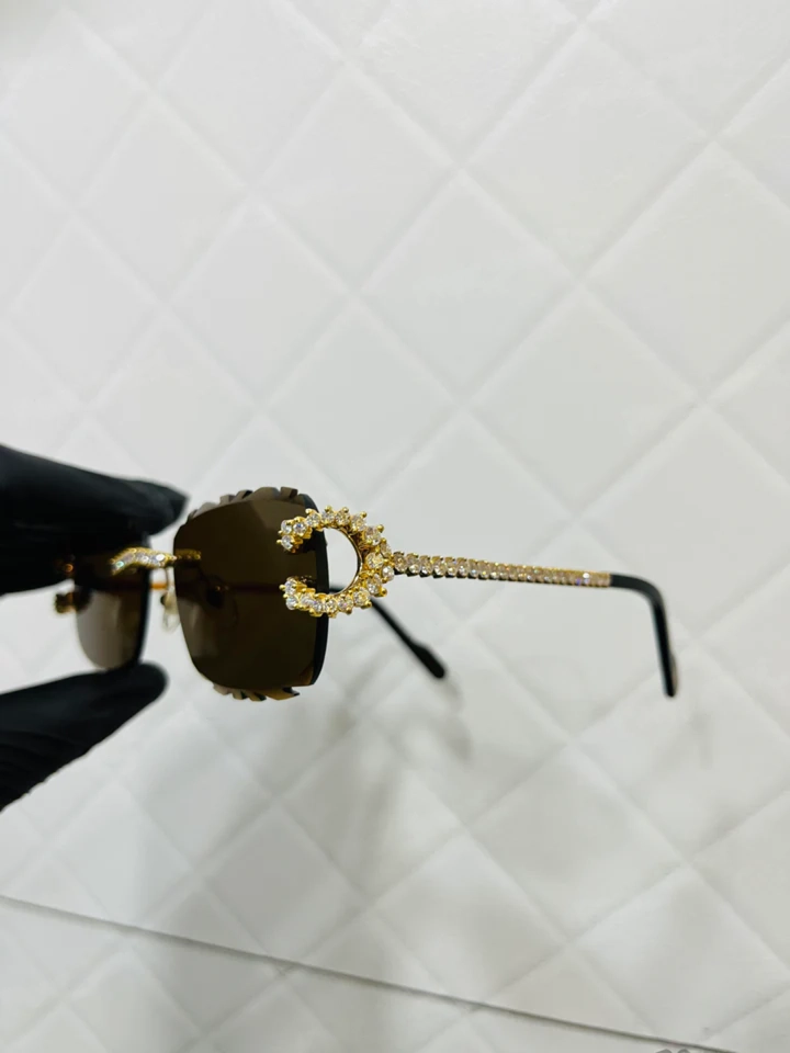 Iced Out VVS Moissanite Diamond Brown Rimless Sunglasses Luxury 925 Silver Hip Hop Shades